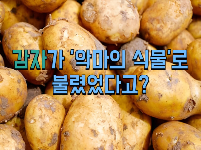 악마의 식물이라 하여 심한 배척을 받기도 했었습니다. 하지만 메마른 땅에서도 잘 자라는 데다 풍부한 탄수화물을 갖고 있어 곧 유럽의 굶주림을 해결해주는 중요한 작물이 됩니다. 특히 18~19세기에 세계적으로 급격한 인구 증가가 발생했을 때, 감자는 값이 싸고 실용적인 농작물로 자리 잡았습니다. 감자는 16세기경 네덜란드의 상인들에 의해 중국에 전래된 것이 우리나라로 들어왔다고 추정됩니다. 이규경의 <오주연문장전산고>에는 1824~25년. 명천의 김씨가 북쪽에서 가지고 왔다는 설, 청나라 사람이 인삼을 몰래 캐가려고 조선에 들어왔다가 떨어뜨리고 갔다는 설이 소개되어 있습니다.